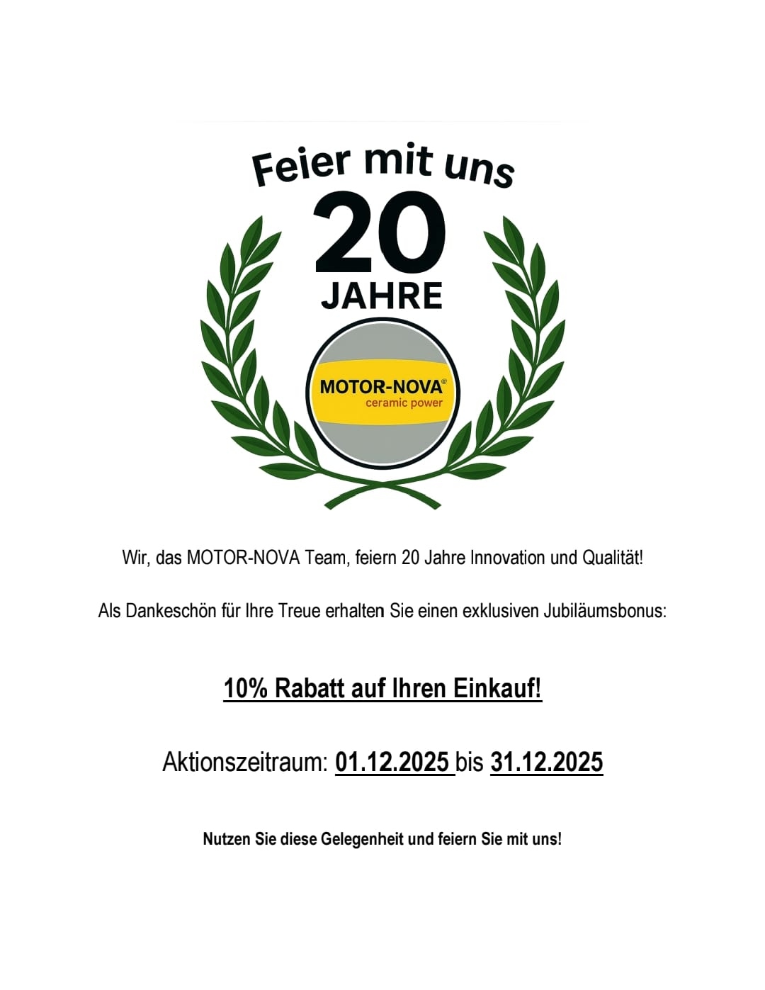 Wir, das MOTOR-NOVA Team, feiern 20 Jahre Innovation und Qualität!